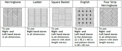 The staves are available in different sizes, widths and thicknesses, see Fig. 1.