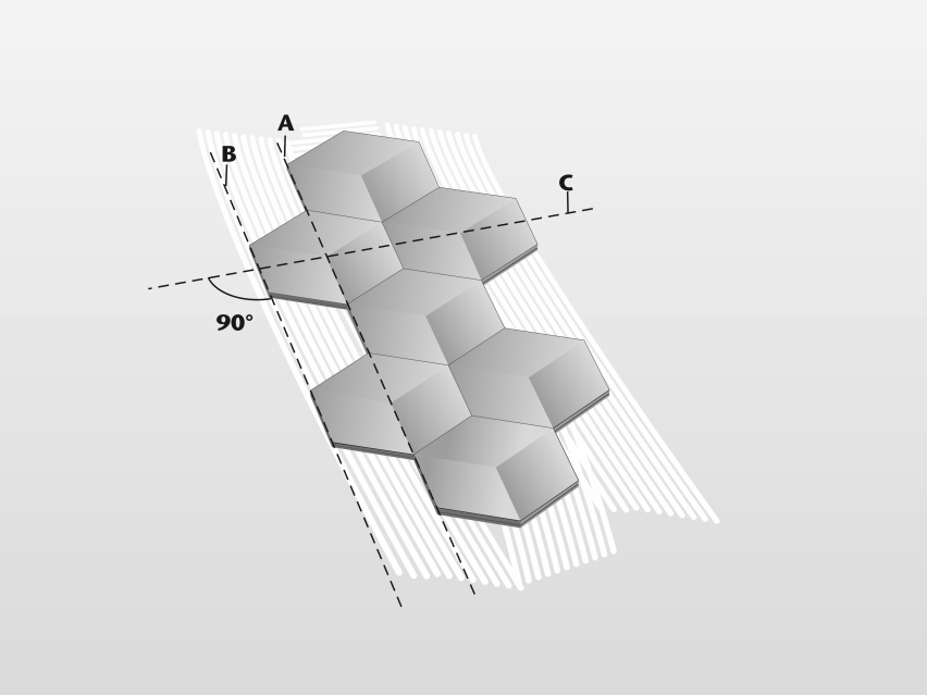 To be able to regulate the laying direction of the starting rows, the edges of the tiles must be in line with the working line B.