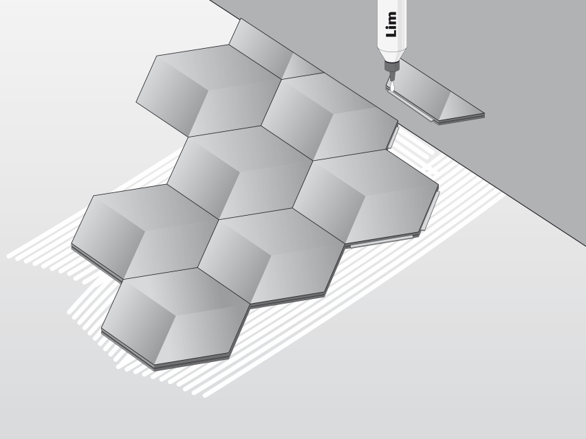 When the starting row is dry, you can continue laying the tiles. Only apply sufficient glue that the laying of the tiles can be finished within 20 minutes.