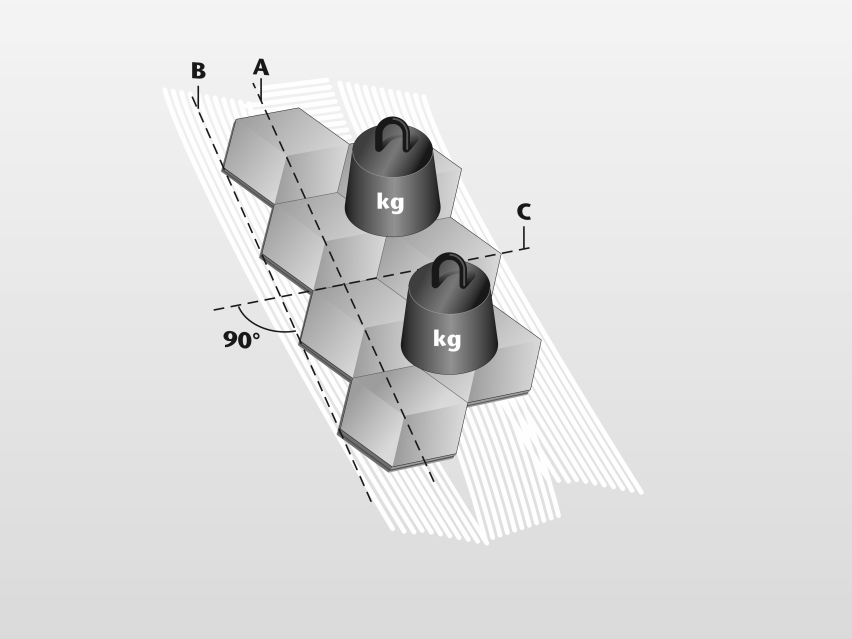 In order to regulate the laying direction of the starting row a working line B is drawn with a string or a chalk line 214 mm from line A.