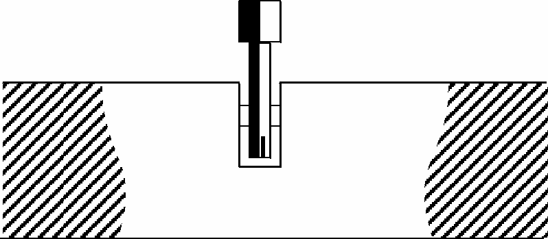 The moisture content is determined in a number of drilled holes or channels cast in the floor. The holes are drilled to a depth of approx. ½ x the thickness of the floor construction and with a diameter which allows the measuring instrument's sensor free passage. Carefully vacuum the hole to remove dirt and dust from the concrete. Place the moisture gauge in the drilled hole with a close fitting barrier seal (airtight), see Fig. 4.