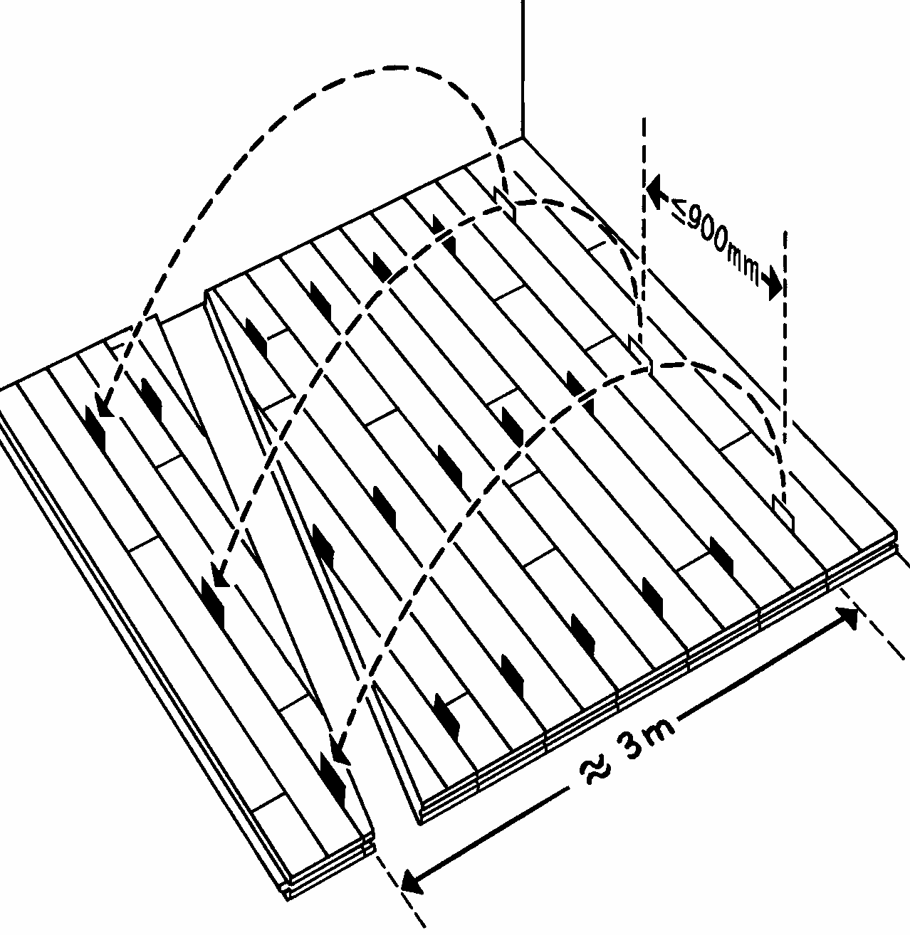 Stave joints in one row of boards should not be in line with stave joints in a neighbouring row, but must be spread as far as possible (min. 50 mm).