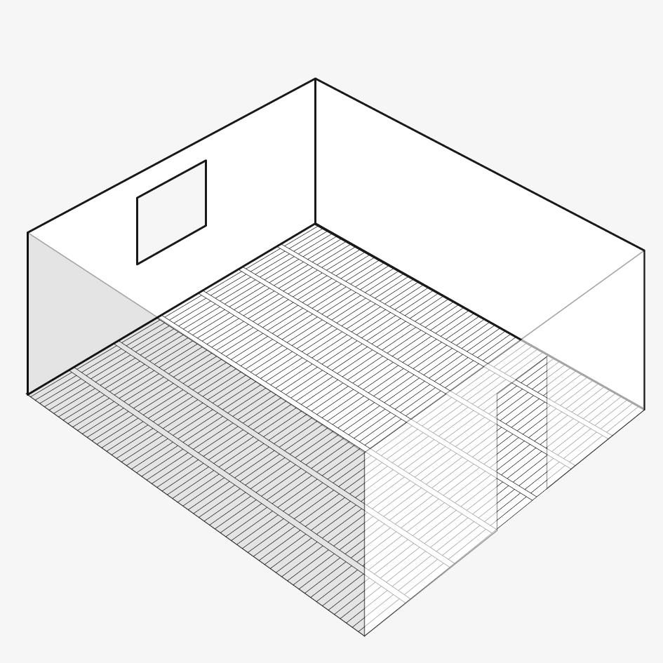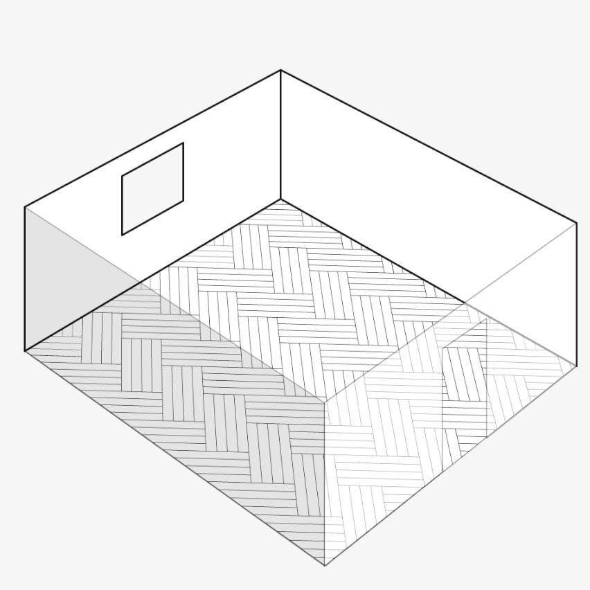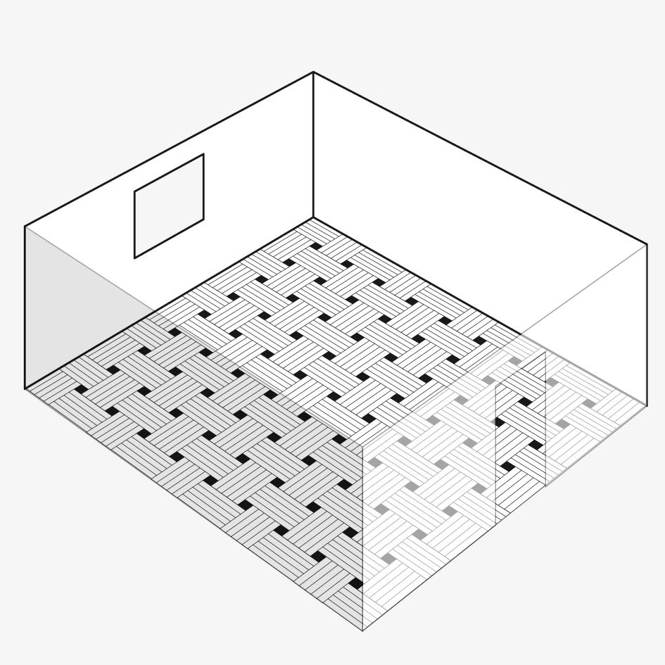 The floor can be laid at an angle of either 90° or 45° in the room (lines A and B, respectively).