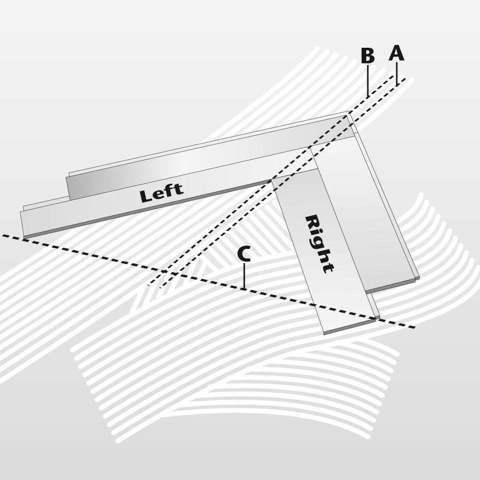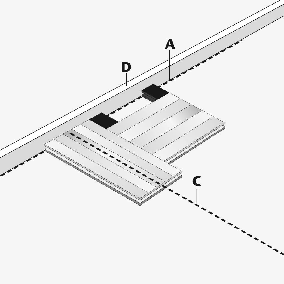 In order to regulate the laying direction of the starting row, the centre line (line C) can be used as regulating line for the corners on the right and left staves, respectively (see figure).