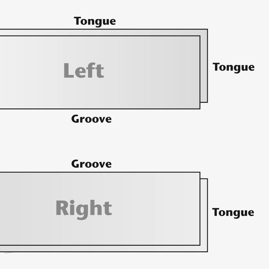The pattern blocks are delivered with groove on all sides. Loose tongues are used on sides where the blocks abut the groove side of the staves.
