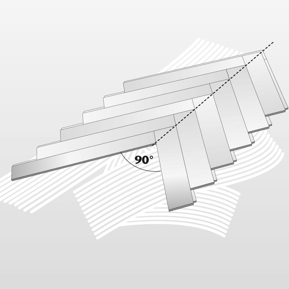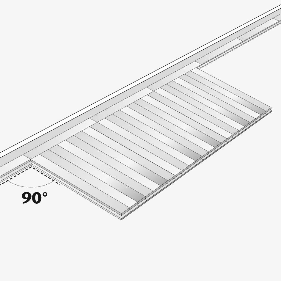 During the laying process it is very important to make sure that the fields with 4 staves are at an angle of 90°.