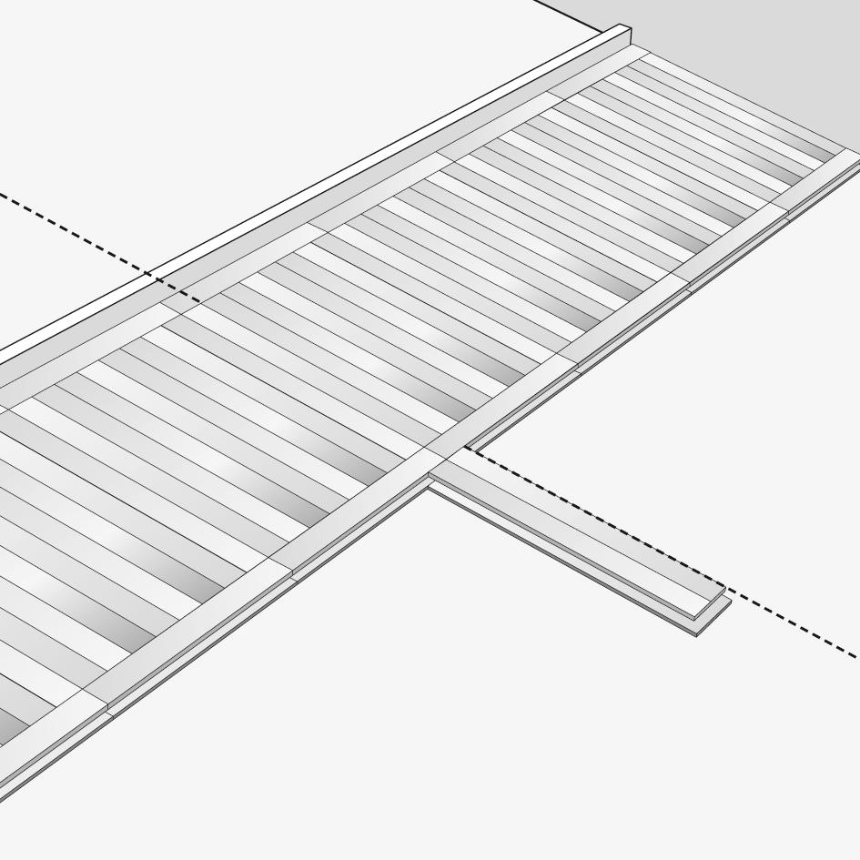 The size of the “cuts” at the walls is measured starting from the centre line. The size of the “cuts” at each side of the room will depend upon the width of the room and if the centre line of the floor passes through a ladder “stringer” or ladder “steps”(shown here starting in the middle of a stringer).