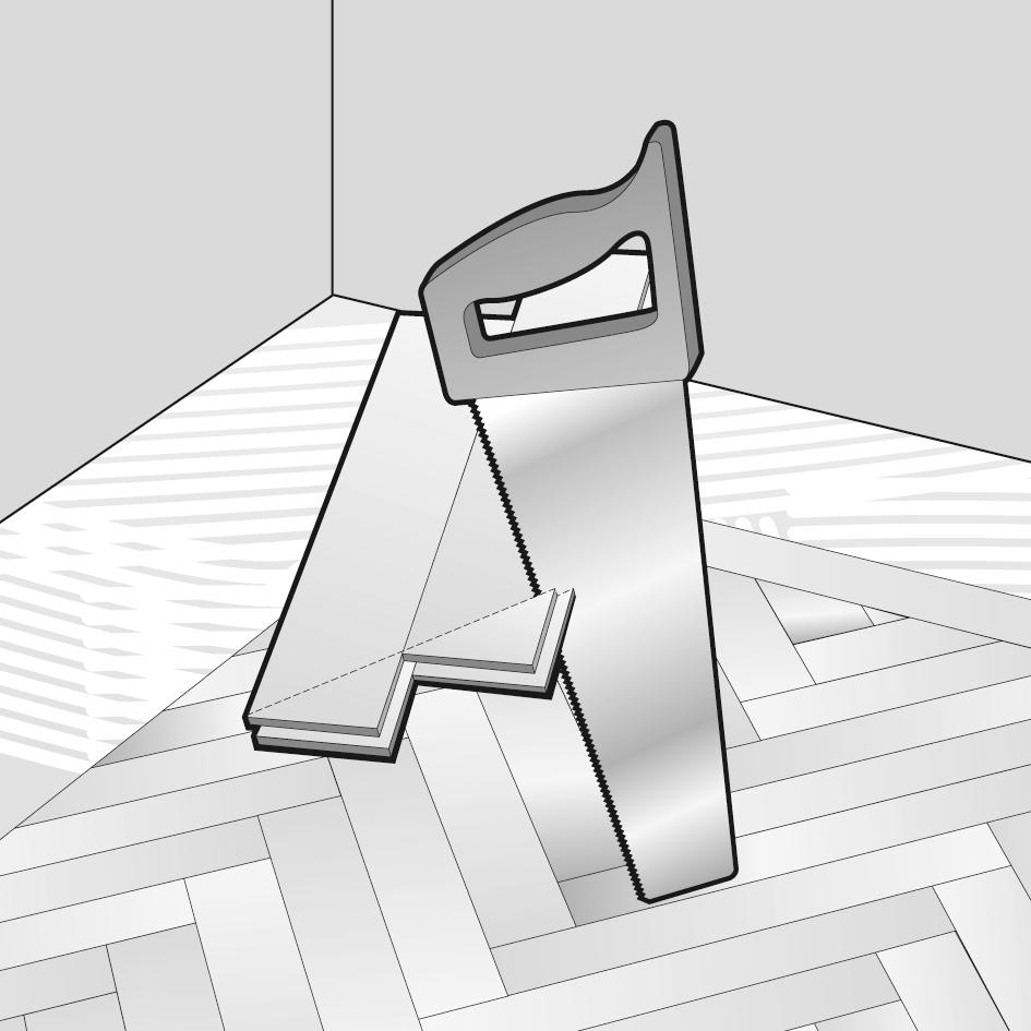 If the floor is to be finished with a border at the walls, the floor is cut at the required distance from the wall corresponding to the desired width of the edging, eg 5 x the stave width + distance to the wall.