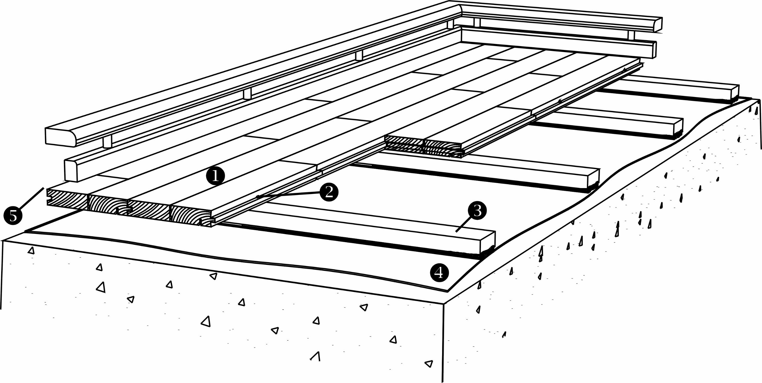 The subfloor must be flat, with a maximum deviation of 2 mm under a 1.5 metre straight edge (UK: 3 mm under a 2 m straight edge).