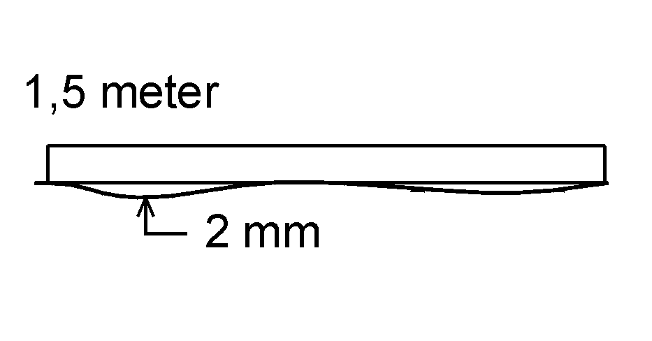The sub-floor must be levelled to a tolerance of no more than 2 mm gap showing under a 1.5 m straight edge (UK: No more than a 3 mm gap showing under a 2 m straight edge).