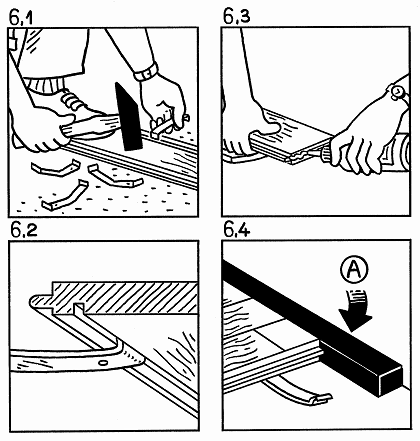 NB: Make sure the free end of the clips comes up properly in the groove on the neighbouring board. Since this can be difficult due to the elasticity of the mat, use e.g. a small metal plate or the like as a load spread sheet. The metal plate is moved as work progresses.