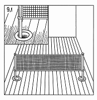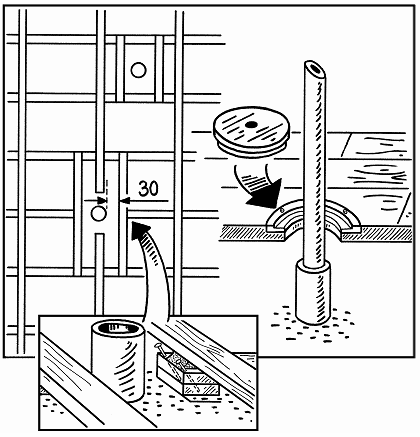 On mounting of bushings in the surface of the floor the internal diameter of the bushing must exceed that of the pipe, i.e. the external diameter of the net pole, by at least 40mm. At the outermost zones of the floor all bushings are mounted eccentrically towards the middle of the floor in relation to the sockets in the concrete.