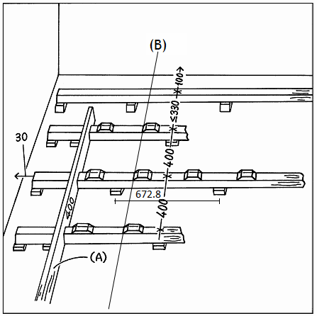 NB: The distance between board header joints in two consecutive rows must be 4 x 336.4 mm = 1345.6 mm, as shown in the drawing.