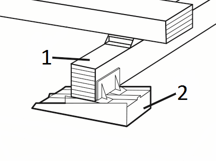 The lower battens (1) are levelled using the wedges (2). Extra wedges are mounted in each end of the batten rows, where the last batten is fitted by the wall.