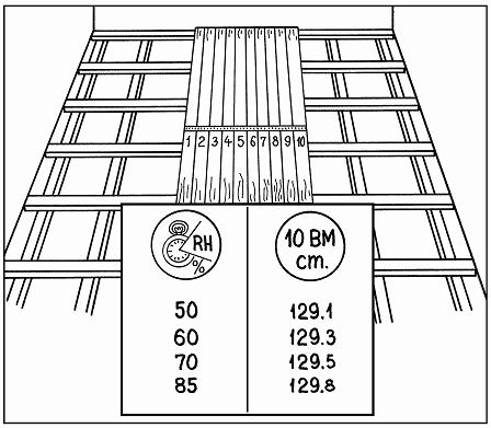 To avoid as far as possible stress or moisture formation in the floor, due to fluctuations in the climatic conditions in the building, the boards must be laid according to the 10-board rule which indicates the width of 10 boards when laid. Compliance must be checked continuously.