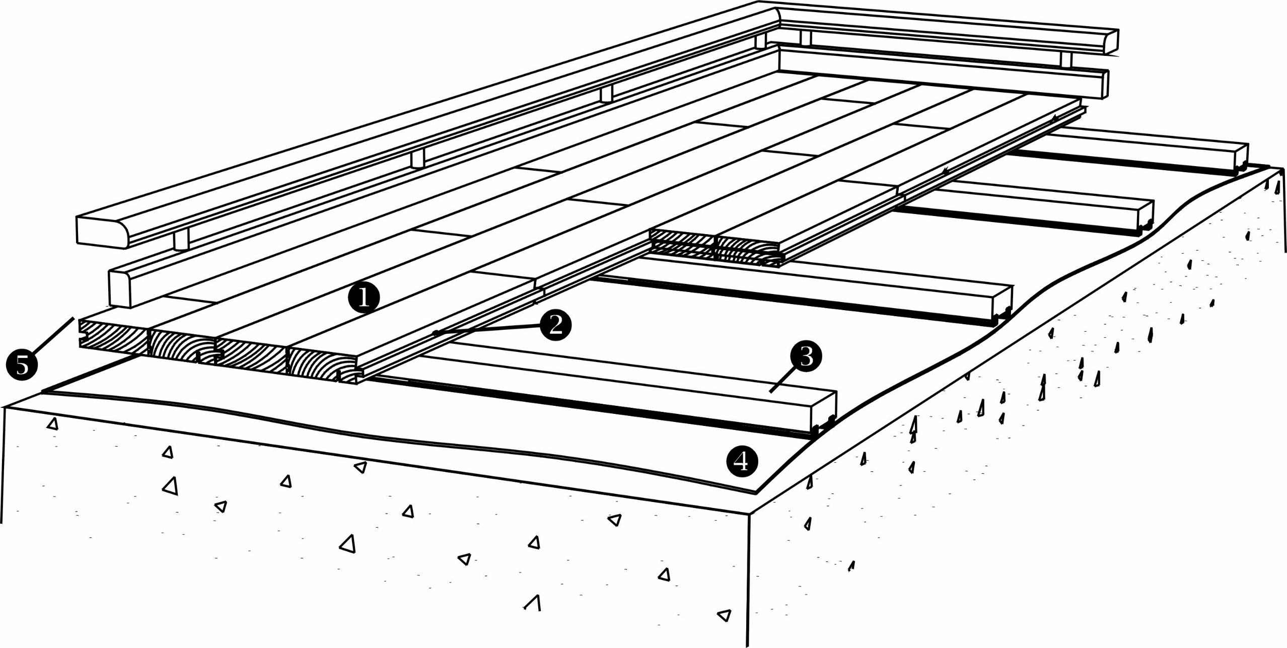 22 mm solid hardwood floor boards nailed to a substructure of prefabricated battens. Manufactured as a single layer structure of 19 x 45 mm laminated battens with rubber band pre-mounted in grooves on the underside of the batten.