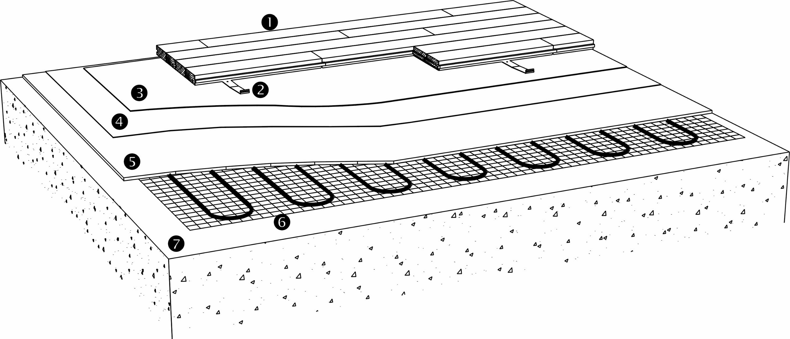 The clip system can be laid on concrete subfloors with a heating mat installed on the surface.