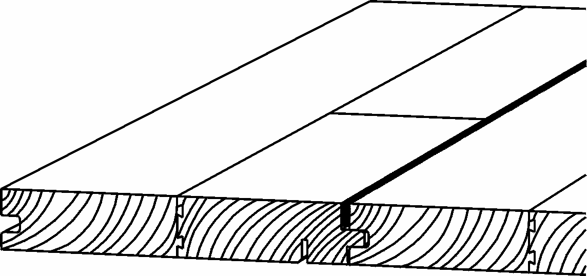 Wood is a living material. Wood will contract when heated from an underfloor heating system and during the heating season larger board gaps than normal will form between the boards. The floor temperature under e.g. low bookcases and carpets with good heat insulation properties will be higher than for the rest of the floor, so that larger gaps can be expected in these areas. Junckers Ship’s Decking is particularly suitable for laying over underfloor heating since the joint absorbs movement in the floor surface and thereby prevents gaps forming, see Fig. 2.