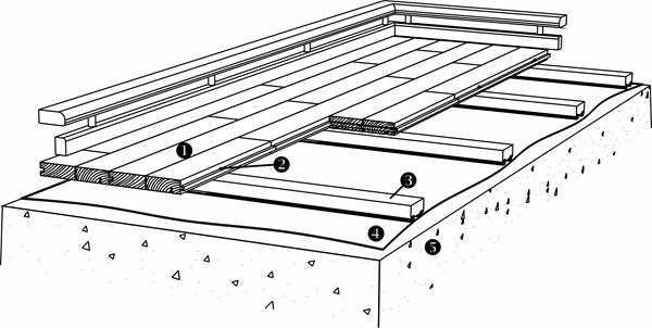 Moisture barrier: All overlaps must be taped using 50 mm wide tape. For detailed sports floor system information, see D 2.1.