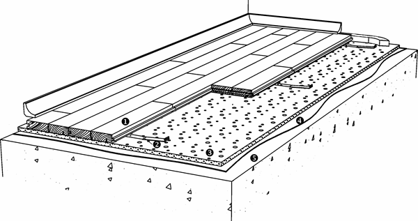 Junckers Clip Sports Floor System can be laid on concrete or screeded subfloors with castin heating pipes or cables. It is extremely important that the floor heating system is designed to achieve a stable temperature across the surface of the concrete or screed. The following applies to heating pipes in concrete or screeded floors: