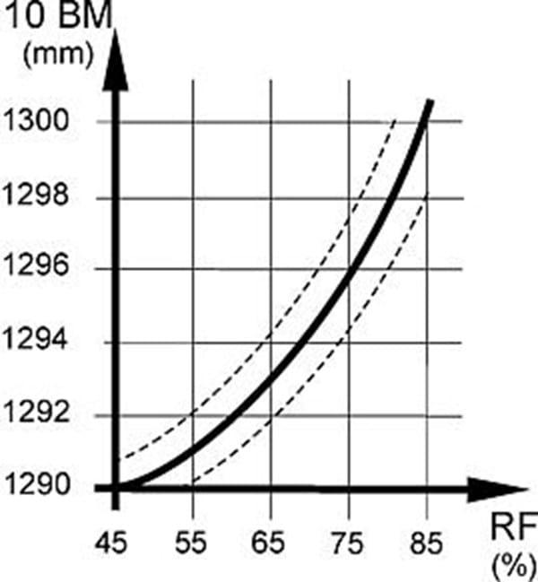其湿度范围,即一年中最低和最高的相对湿度差值,不应该超过25至30%点数。