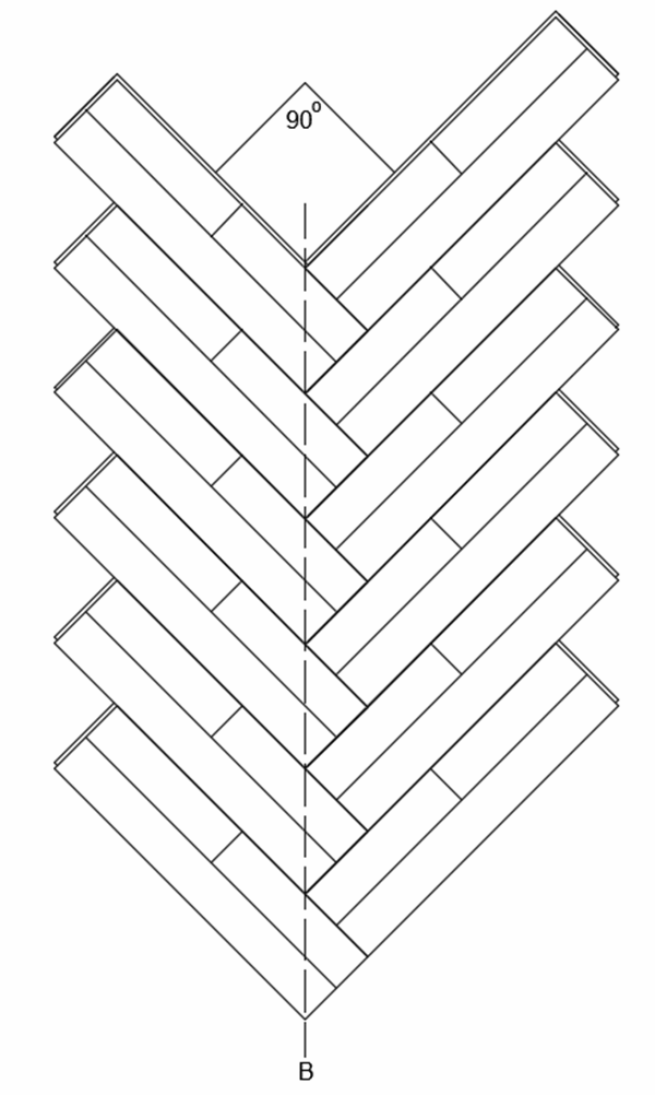 当温度和湿度变化时,木地板会轻微收缩/膨胀。因此,当双人字拼花地板的木块以平行模式进行大面积安装,例如:梯子模式,有必要按照10板测量法则进行安装。