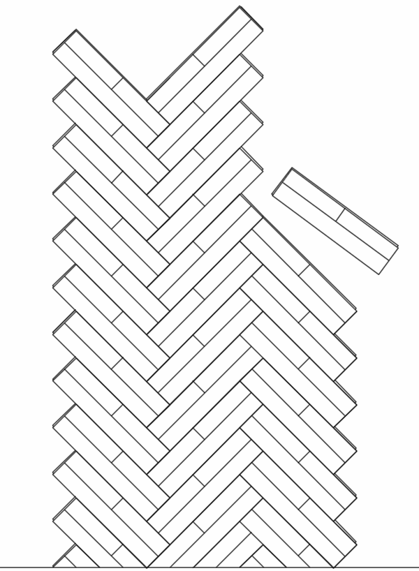 每块拼花地板由两行木条组成。一行是完整长度的木条而另外一行是两条半长的木条。这样就得到一个有趣的图案。